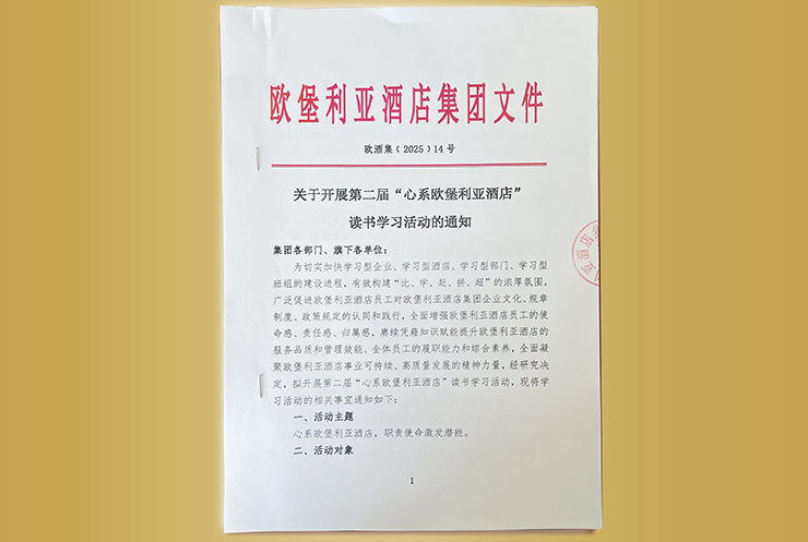 堡利亞酒店集團(tuán)企業(yè)文化、規(guī)章制度、政策規(guī)定的認(rèn)同和踐行,全面增強(qiáng)歐堡利亞酒店員工的使命感、責(zé)任感、歸屬感,賡續(xù)憑藉知識(shí)賦能提升歐堡利亞酒店的服務(wù)品質(zhì)和管理效能、全體員工的履職能力和綜合素養(yǎng),全面凝聚歐堡利亞酒店事業(yè)可持續(xù)、高質(zhì)量發(fā)展的精神力量,2025年9月25日-9月29日,歐堡利亞酒店集團(tuán)開展了以“心系歐堡利亞酒店,職責(zé)使命激發(fā)潛能”為主題的第二屆“心系歐堡利亞酒店”讀書學(xué)習(xí)活動(dòng),整個(gè)活動(dòng)分為宣傳發(fā)動(dòng)、組織學(xué)習(xí)、報(bào)名準(zhǔn)備、分類考核、閱卷統(tǒng)計(jì)五個(gè)階段,有效實(shí)現(xiàn)了“全員參與、以學(xué)促知、以知促行”的活動(dòng)目標(biāo)。